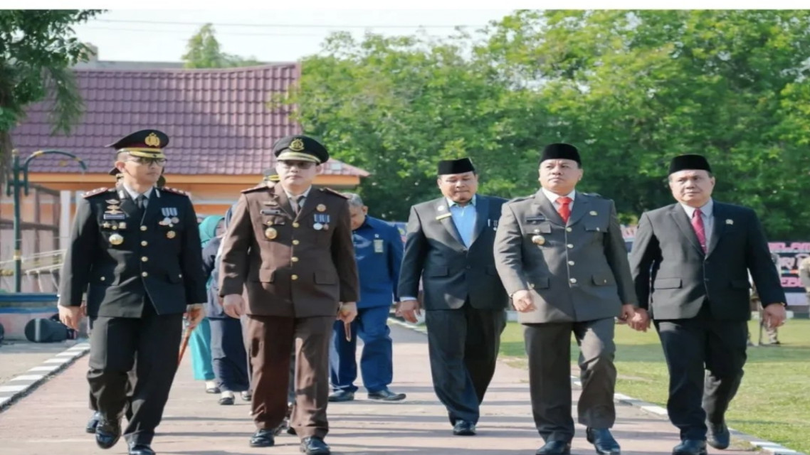 Upacara yang berlangsung khidmat ini dipimpin langsung oleh Kapolres Kuansing, AKBP Angga Febrian Herlambang, S.I.K., S.H. Tampak hadir jajaran Forum Koordinasi Pimpinan Daerah (Forkopimda), staf ahli bupati, para asisten, kepala OPD, pejabat eselon di lingkungan Setda, pimpinan instansi vertikal, camat, serta perwakilan organisasi kemasyarakatan, organisasi wanita, dan tokoh masyarakat.