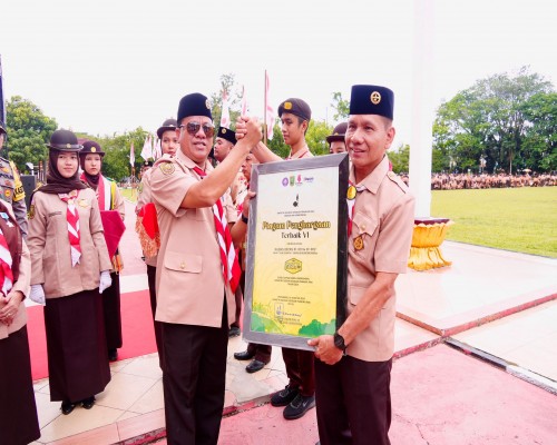 Inewsfaktual.com | Teluk Kuantan - Bupati Kuantan Singingi Dr. H. Suhardiman Amby jadi Inspektur Upacara di hari peringatan Pramuka...